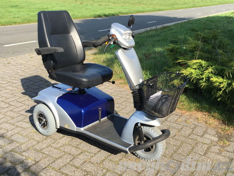 Prodám elektrický tříkolový skútr určený pro osoby s omezenou hybností. Skútr má dobré baterie 2x12V 60Ah, délka 140 cm, šířka 68 cm, rychlost 15 km/h, nosnost 160 kg. Součástí je nabíječka, držák holí, košík a zpětné zrcátko.