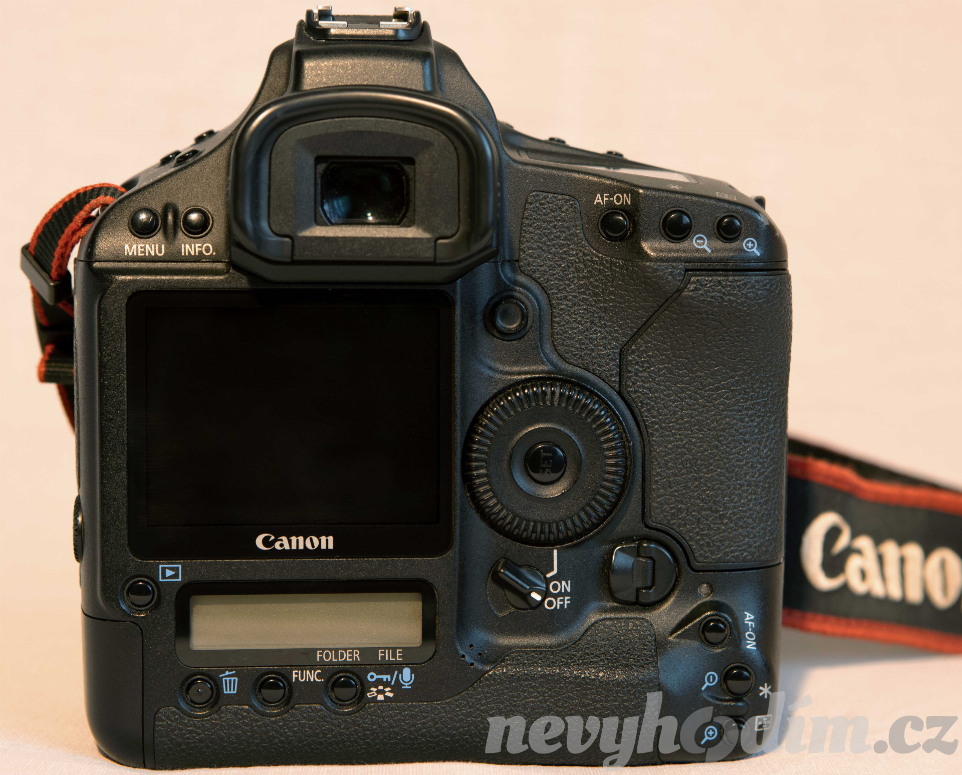 Profesionální fotoaparát opečovávaný ve výborném stavu, obrazový Full Frame / FX snímač CMOS 36 x 24 mm – plný kinofilmový Leica formát. Záznam ve formátech - RAW, sRAW a JPEG. Zvuková poznámka - až 30s zvuku ke snímku. Automatické zaostřování, inteligentní AF servo, dvojice procesorů DIGIC III, Souvislé snímání až 56 snímků rychlostí 5 sním./s. Vertikální závěrka konstruována na 300 000 cyklů - realizováno pouze cca 80 tisíc cyklů.